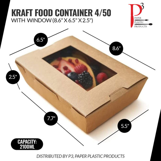 Kraft Food Container 4 packs by 50 Take-Away Food Box Container - 200/case [EIKFCW862]