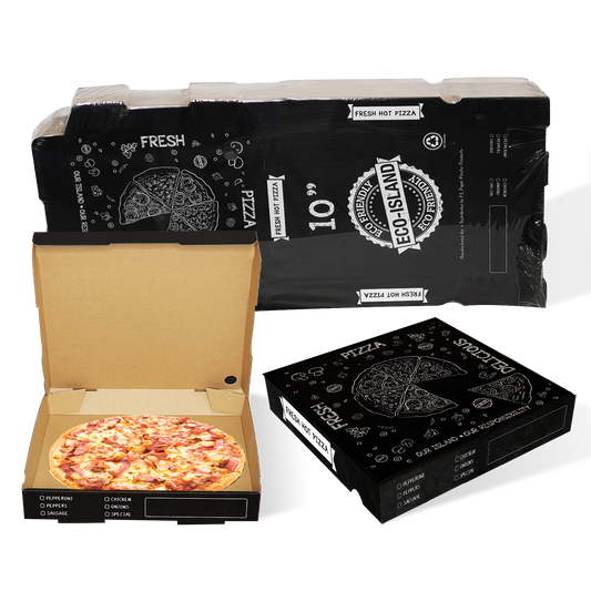 Eco-Island Box 14" 1 pack by 50 Pizza Boxes - 50/case [OUTLINE (BLACK) |]