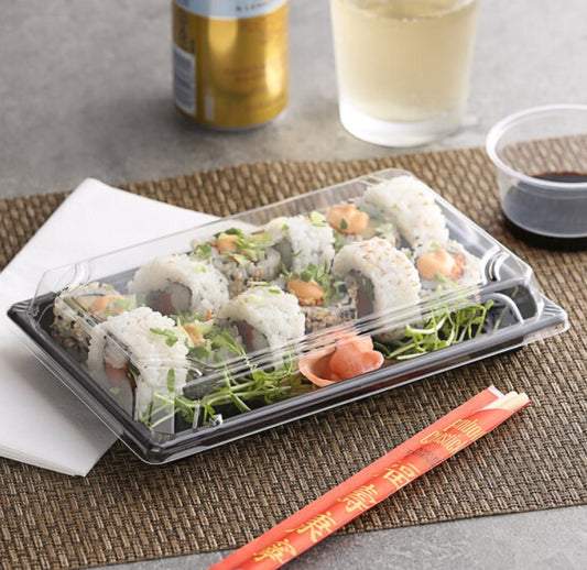 Sushi Container with 6 packs by 50 Sushi Container Trays with Lids - 300/case [795SUS050801]