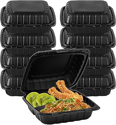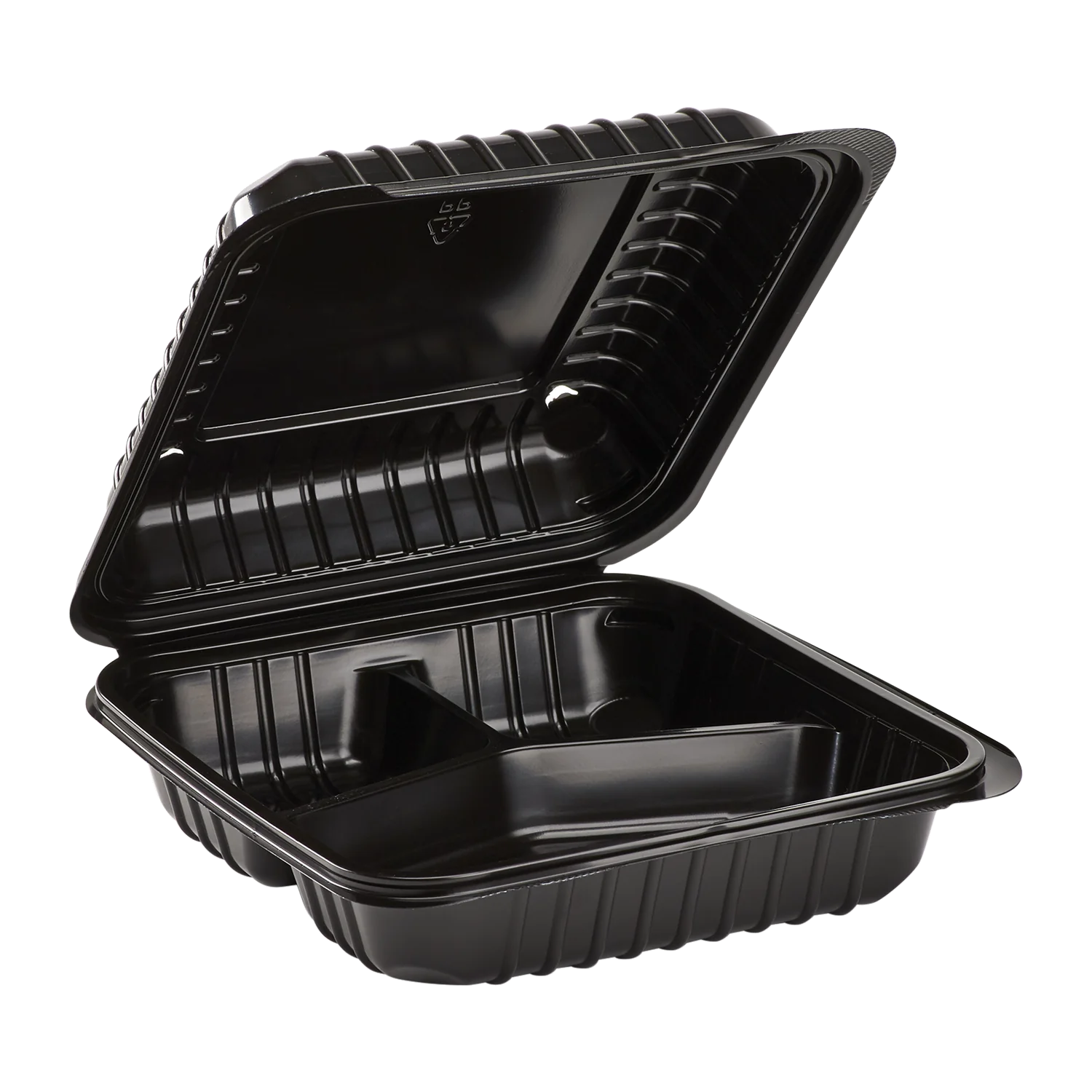 📦 Stock up with the 9x8 Clamshell Tray 3 Div Reserve Black for a reliable, convenient, and stylish takeout packaging solution!