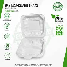 📦 Upgrade your takeout and meal prep with 9x9 Eco-Island 3-Compartment Trays – the smart, sustainable choice for portioned meals!