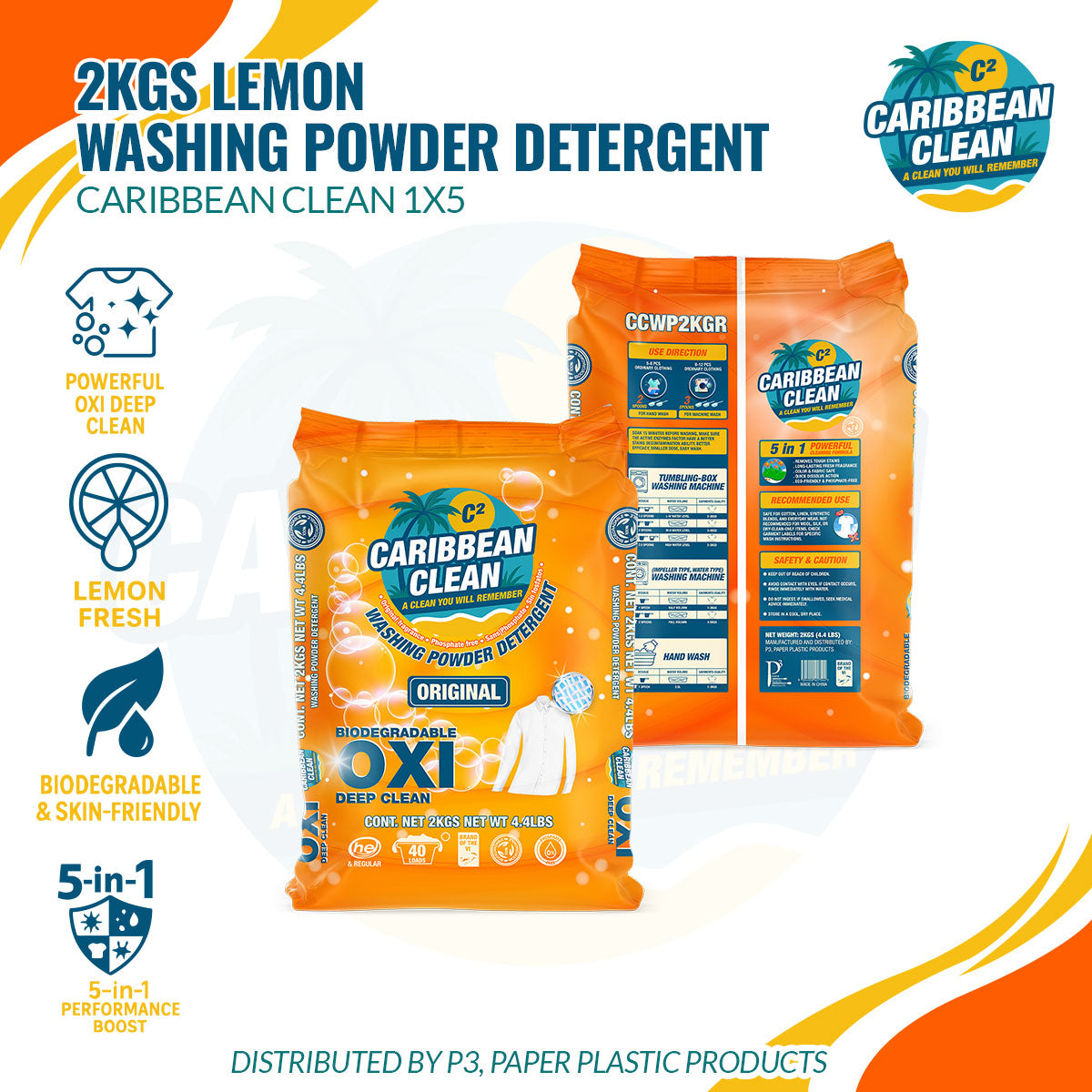 Washing Powder Detergent Lemon Caribbean Clean 2kg – SKU: CCWP10008 | Item Code: CCWP2KG4 | Pack: 1/5 (5 Bags per Case)