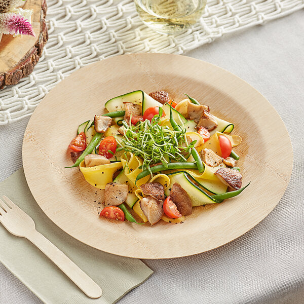 Wooden 7" Round 1 pack by 100 Disposable Plates - 100/case [175BRP07]